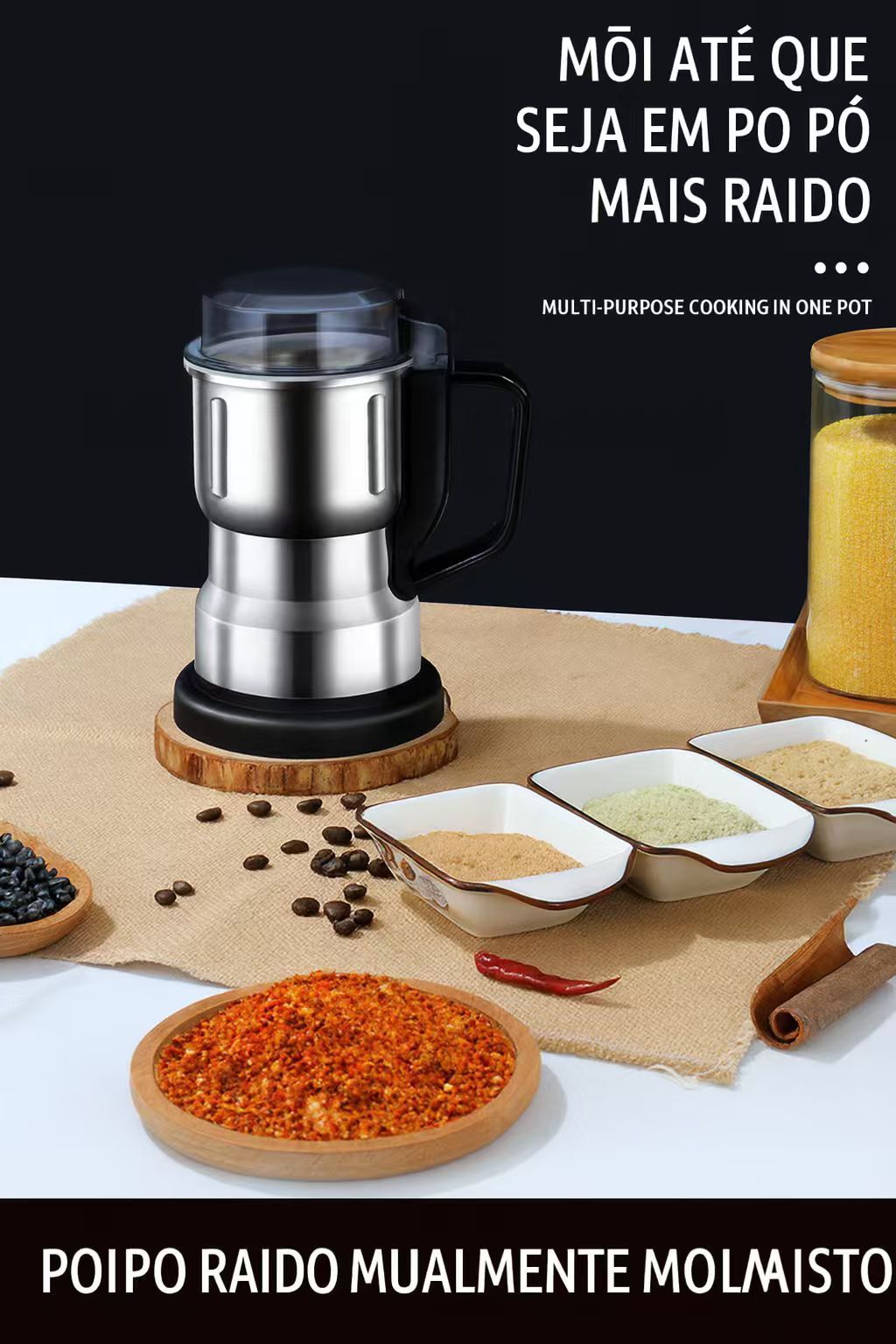 Moer café, milho, pimenta, alho, gengibre e muito mais em poucos segundos.