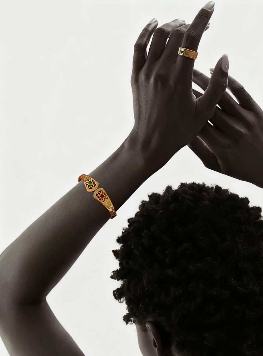 Pulseira dourada de aço titânio com duplo cristal ao estilo angolano