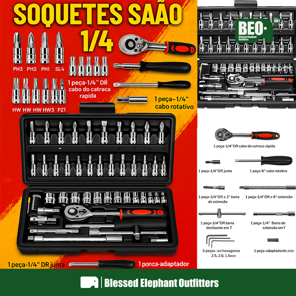 O Kit de Soquetes 1/4" 46 Peças com Mala é um conjunto completo para realizar diversos trabalhos de manutenção em casa, moto e carro. Com soquetes de diferentes tamanhos e acessórios adicionais, você terá todas as ferramentas necessárias em um único kit.
