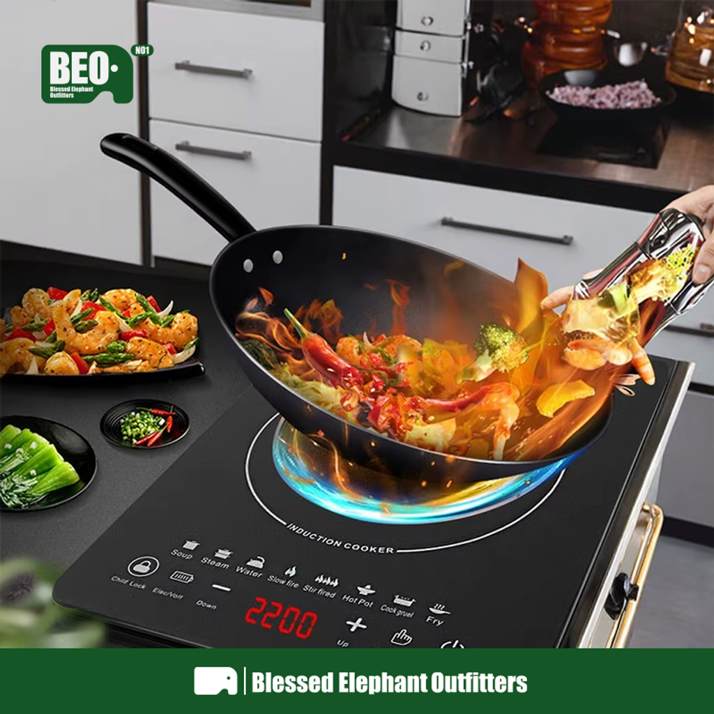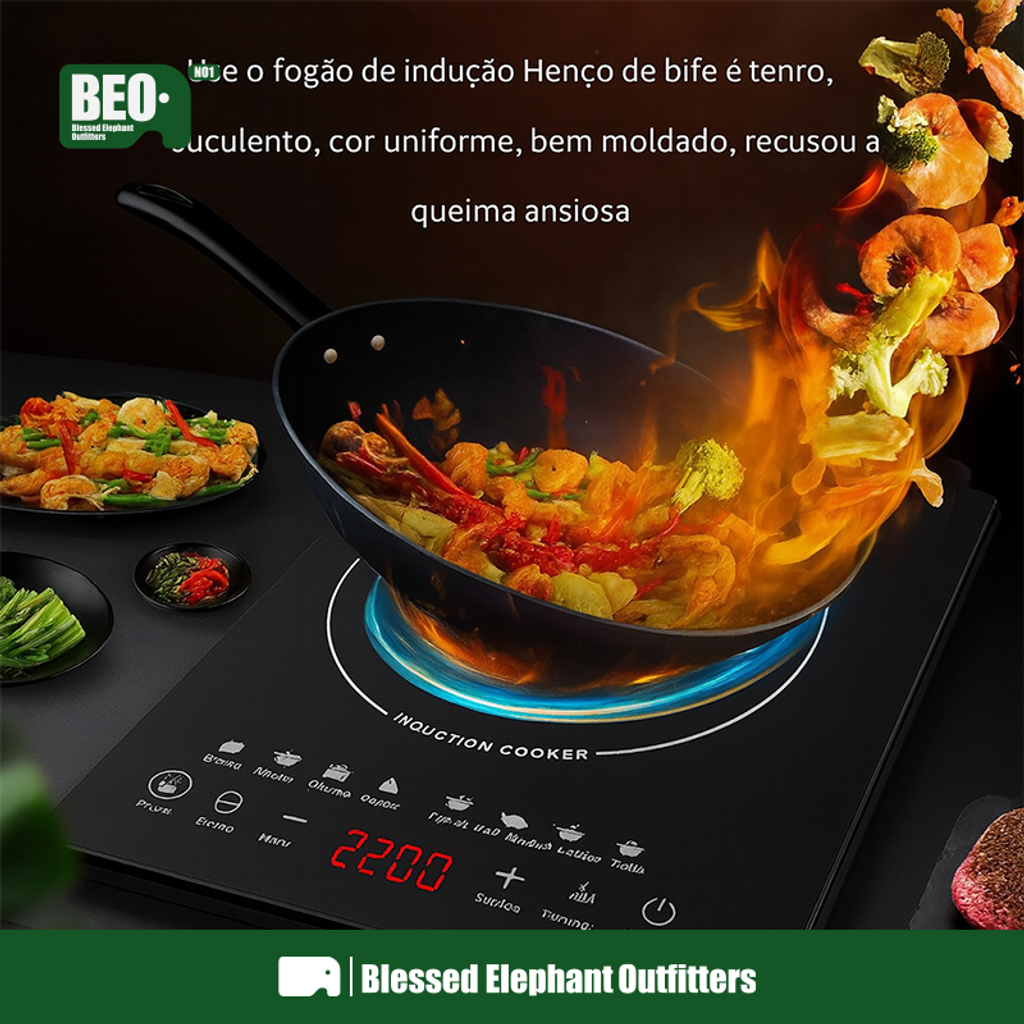 🔥 Potência ajustável 200–2200W – do fogo baixinho para molhos ao fogo forte para fritar e saltear.